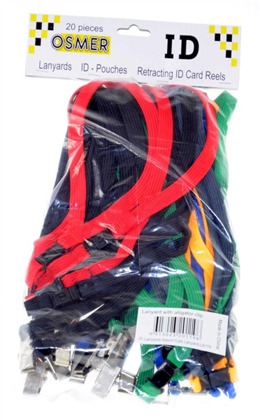 ALLIGATOR CLIP WOVEN LANYARD WITH SAFETY RELEASE ASSORTED PACK 20