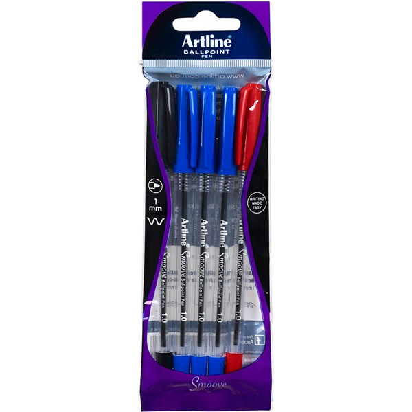 ARTLINE SMOOVE BALLPOINT PEN MEDIUM 1.0MM ASSORTED PACK 5