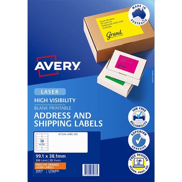 AVERY 35977 L7163FO HIGH VISIBILITY SHIPPING LABEL LASER 14UP FLUORO ORANGE PACK 25