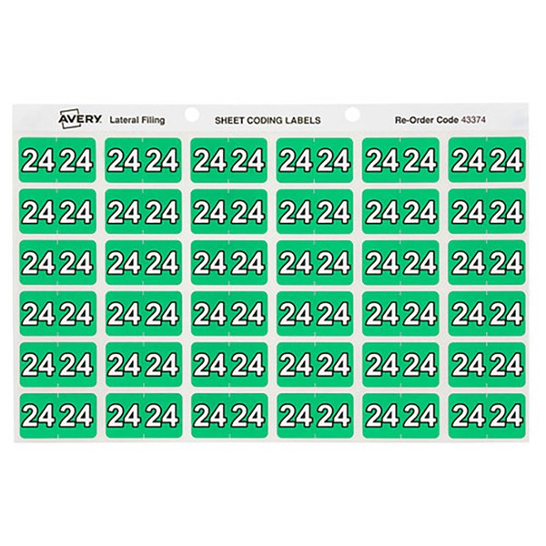 - There are 180 green numeric 24 side tab year colour coding labels in a pack with a size of 25 x 38mm ready to stick straight onto the side tab of your Avery lateral files