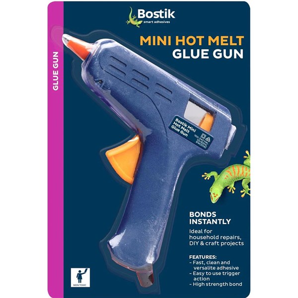 The Bostik Mini Hot Melt Glue Gun is designed for craft and home d cor projects, and minor household repairs - Lightweight, easy to use, trigger action glue guns for dispensing hot melt glue