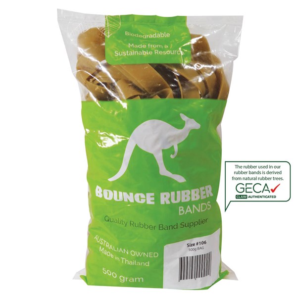 SPECIFICATIONS - Type: Rubber Bands - Size: 106 - Dimensions: 15 x 150mm - Weight: 500g - Colour: Natural - GECA Claim Authenticated - OEM: RETBAND106N