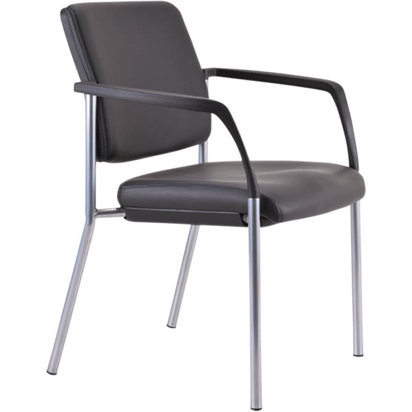 BURO LINDIS VISITOR CHAIR 4-LEG BASE UPHOLSTERED BACK ARMS JETT FABRIC BLACK