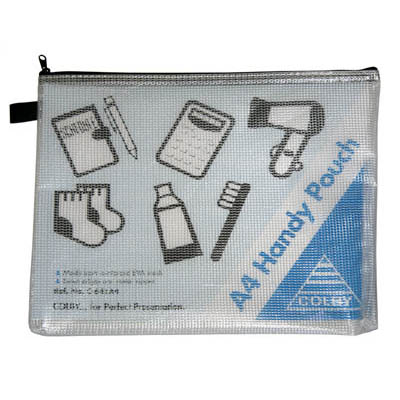 Colby Handy Pouch Pencil case - High quality zippered pouch, made from water-resistant mesh reinforced PVC, with fabric finger loop and fabric-backed metal zip