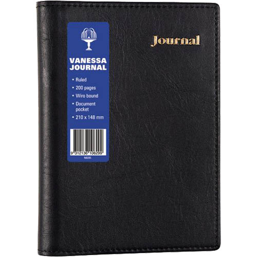 COLLINS VANESSA NOTEBOOK JOURNAL WIRO BOUND RULED 200 PAGE LEATHERGRAIN PVC A5 BLACK