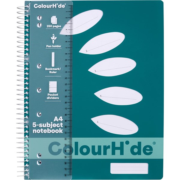 COLOURHIDE NOTEBOOK 5 SUBJECT 250 PAGES A4 TEAL GREEN