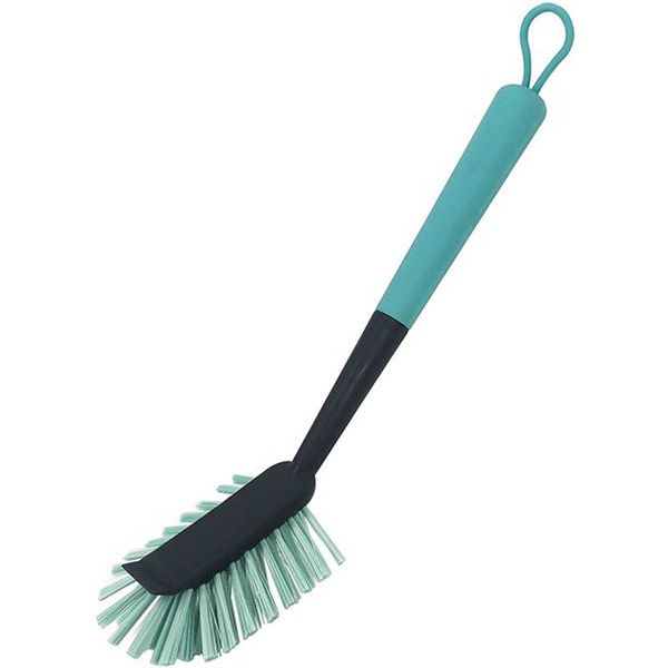 The Compass Plastic Dish Brush is made from strong plastic and is blue and black in design - It has thick nylon bristles and comes with a hanging hook
