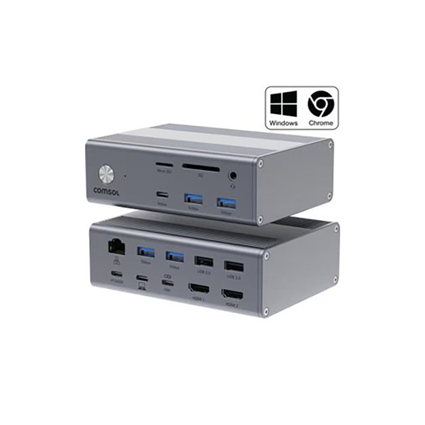 COMSOL USB-C DUAL MONITO 16 PORT DOCKING STATION GREY
