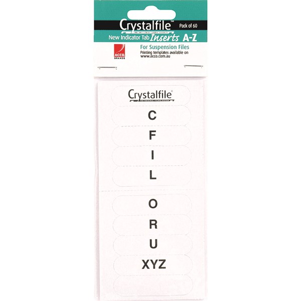 CRYSTALFILE INDICATOR TAB INSERTS A-Z WHITE PACK 60