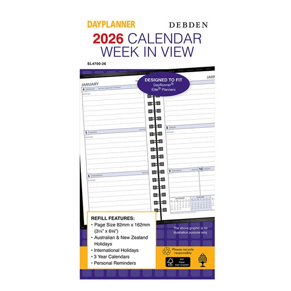 Debden offer an extensive range of organiser refills, printed in two colours on quality white paper - All Debden DayPlanner refills have universal hole punching to fit most organisers