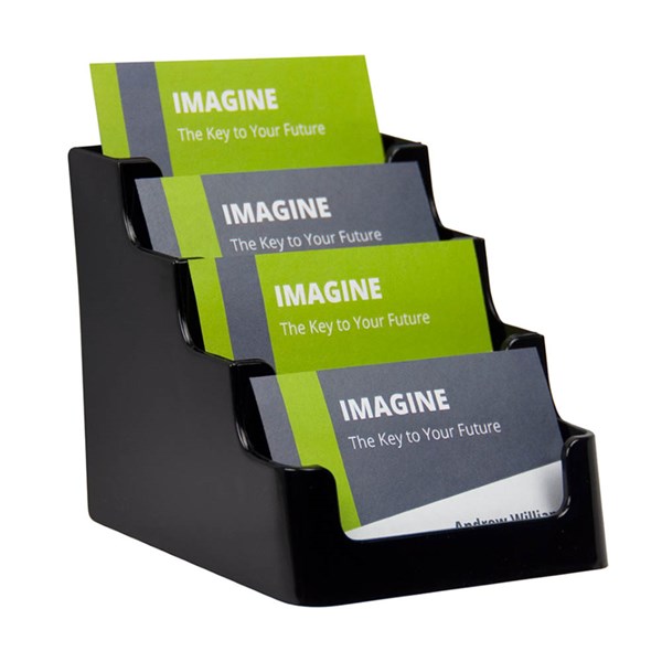 Display your business cards prominently using this 4 tier, recycled plastic, landscape business card holder - Made from over 60% recycled plastic
