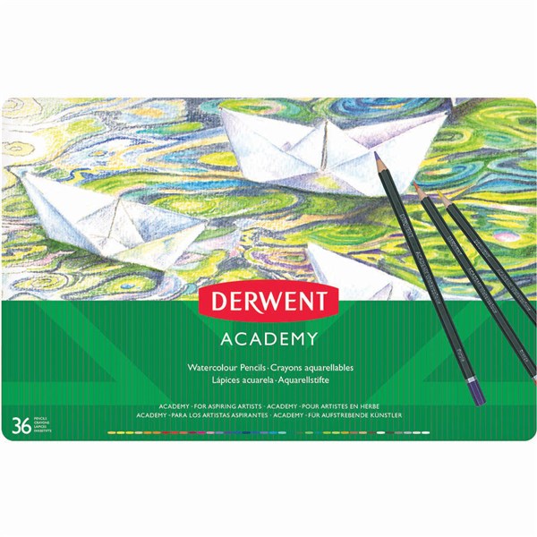 DERWENT ACADEMY WATERCOLOUR PENCILS ASSORTED TIN 36