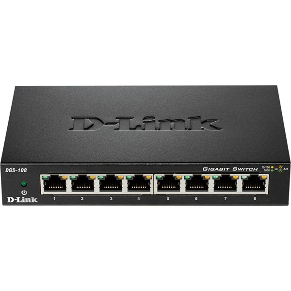 D-LINK DGS-108 DESKTOP SWITCH 8 PORT GIGABIT UNMANAGED BLACK