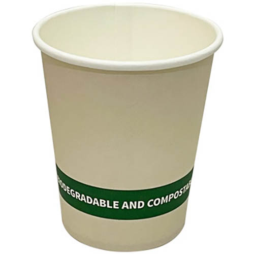 - 8oz single-walled hot cups with a polylactic (PLA) bio-lining and 80mm diameter