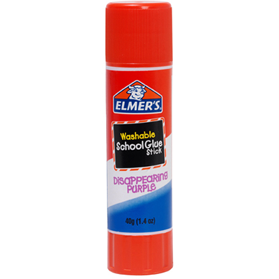 Elmer's school glue stick's disappearing purple formula goes on purple and dries clear, making it easy to see when applying