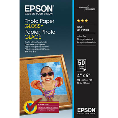 EPSON C13S042547 GLOSSY PHOTO PAPER 200GSM 6 X 4 INCH WHITE PACK 50