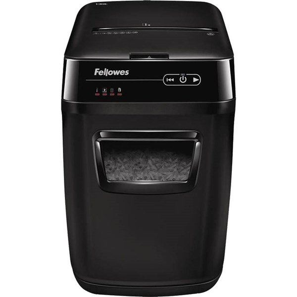 • The Fellowes AutoMax offers a truly walk away shredding experience, automatically shredding stacks of paper with wrinkles, staples, and even paper clips. Simply load the drawer, press start, and walk away
