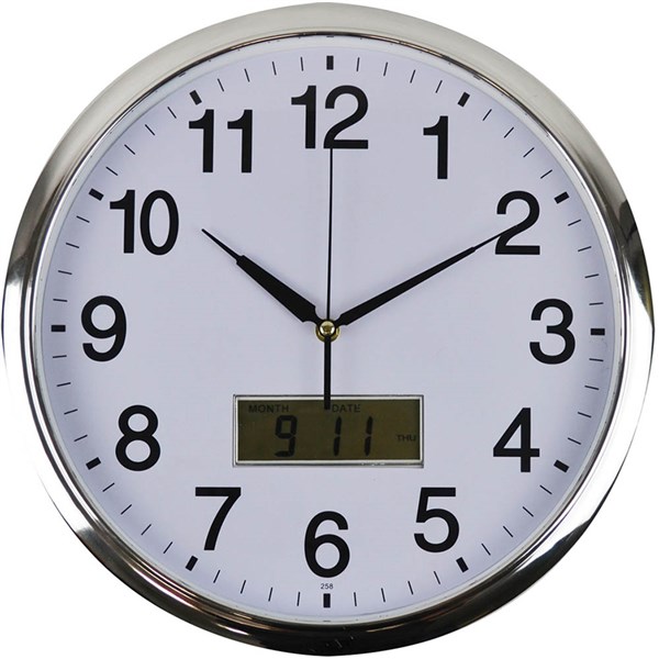 Do more than just tell the time with this Contemporary wall mountable clock with LCD date and month display - Suitable for corporate environment and home office