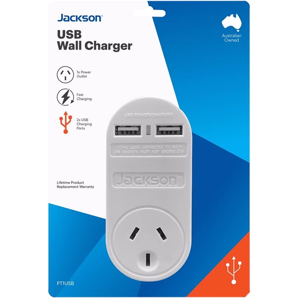 JACKSON CHARGER MAINS POWER OUTLET 2 X USB-A WHITE