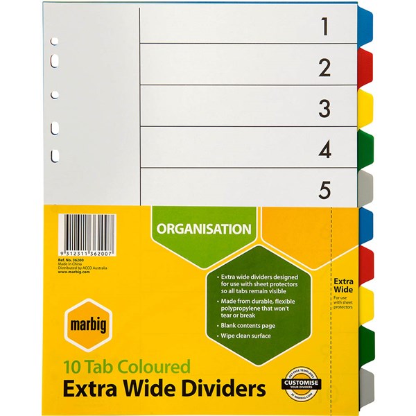 Extra Wide Dividers are 240mm wide and are designed for use with sheet protectors as the tabs extend beyond the edge of the pocket - For frequent use, PP dividers are made from durable, flexible polypropylene that wont tear or break