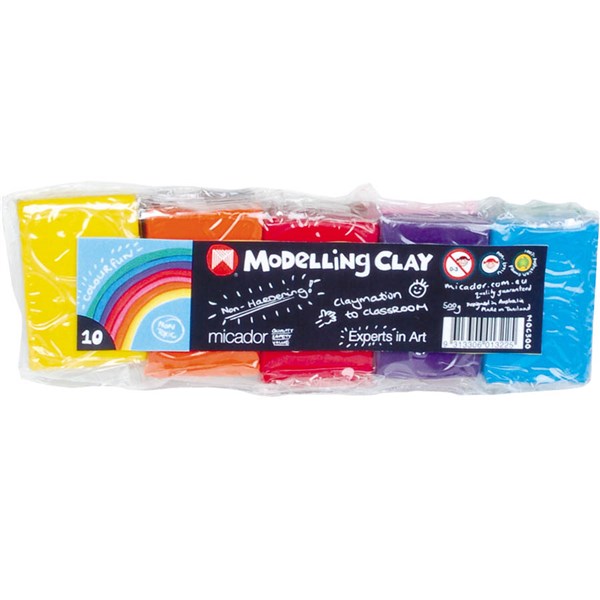 MICADOR MODELLING CLAY 500G ASSORTED PACK 10
