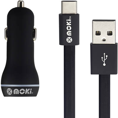MOKI CAR CHARGER AND SYNCHARGE CABLE USB-A TO USB-C 900MM BLACK