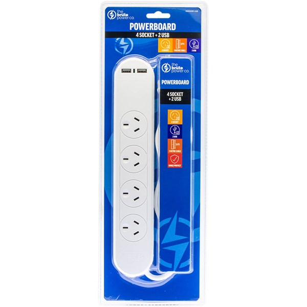 The Brute Power Co - powerboard comes with four power outlets and dual USB ports