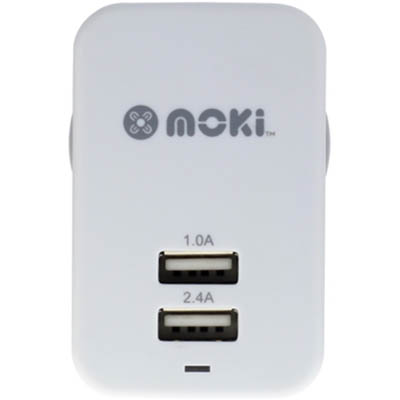 Charge two devices at the same time with the Moki Dual USB Wall Charger - 10W 3.4A output allows rapid recharge of high capacity devices