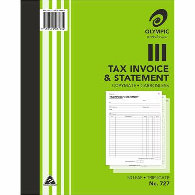 OLYMPIC 727 INVOICE AND STATEMENT BOOK CARBONLESS TRIPLICATE 50 LEAF 250 X 200MM