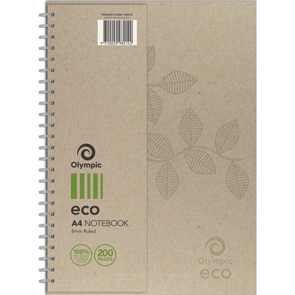 OLYMPIC ECO RECYCLED NOTEBOOK 8MM RULED 70GSM 200 PAGE A4 NATURAL