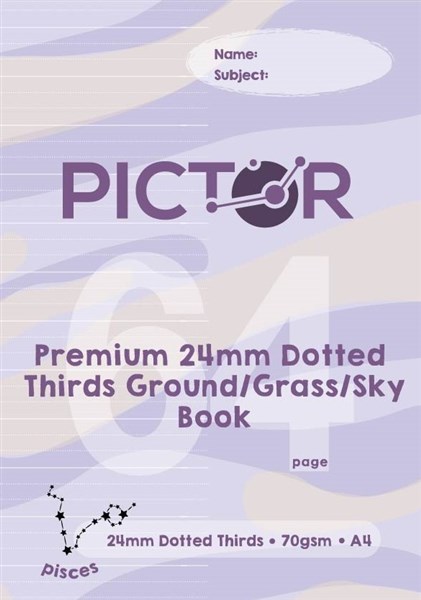 PICTOR COLOURED A4 64 PAGE GROUND / GRASS / SKY EXERCISE BOOK 24MM DOTTED THIRDS PISCES