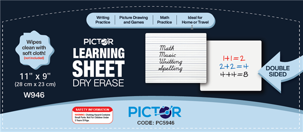PICTOR DRY ERASE LEARNING SHEET WHITEBOARD 280 x 230 24MM DOTTED THIRDS AND PLAIN W946