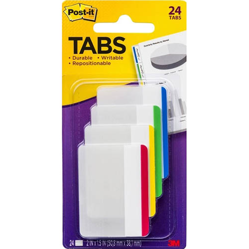 POST-IT 686F-1 DURABLE FILING TABS LINED 50MM PRIMARY ASSORTED PACK 24