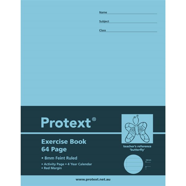 PROTEXT EXERCISE BOOK RULED 8MM 70GSM 64 PAGE 225 X 175MM BUTTERFLY ASSORTED