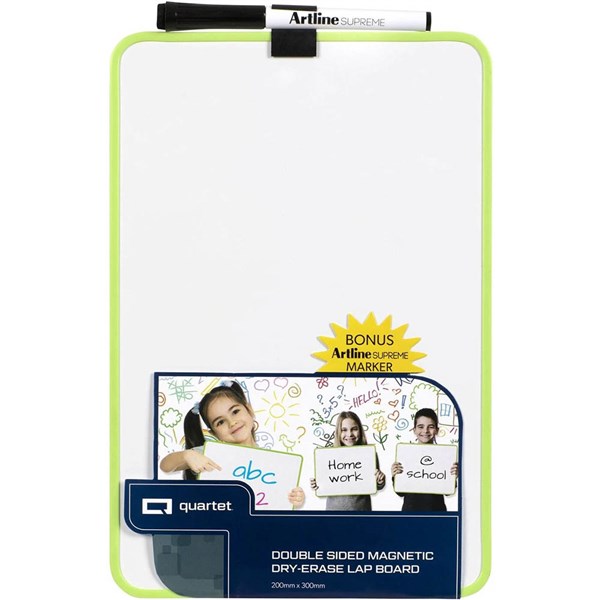 Quartet double sided lap boards with BONUS Artline Supreme feature a magnetic surface, are lightweight and easy to carry - Ideal for children to draw or practice writing on