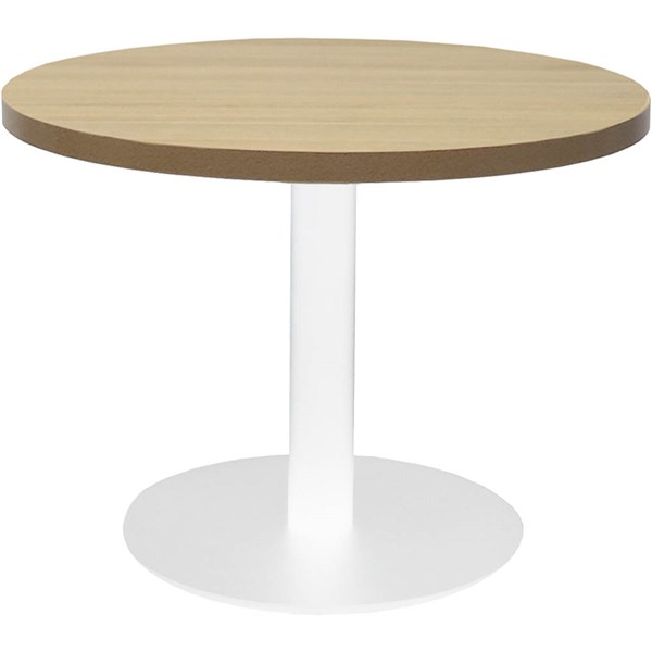 RAPIDLINE CIRCULAR COFFEE TABLE 600 X 425MM NATURAL OAK TABLE TOP / WHITE POWDER COAT BASE