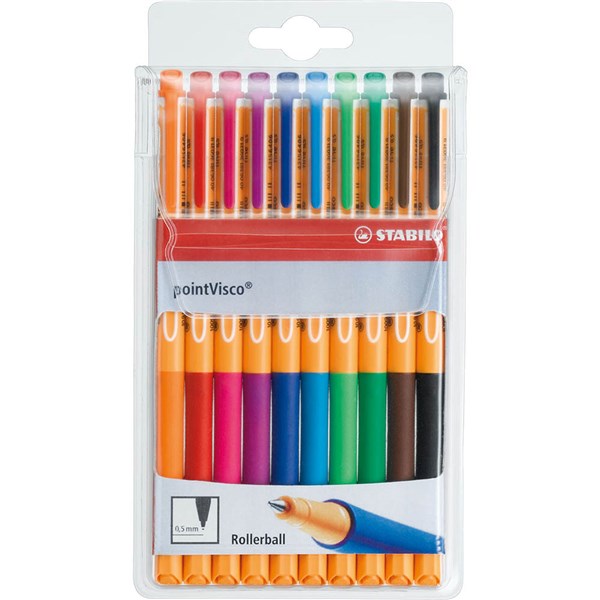 STABILO POINT VISCO GEL ROLLERBALL PEN 0.5MM ASSORTED PACK 10