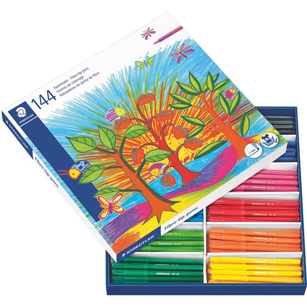 SPECIFICATIONS - ROHS Compliant: Yes - Xylene Free: Yes - Barrel: Plastic - Ink Type: Water-based - Nib Type: Fibre - Nib Size: Medium - Line Width: 1.0mm - Pocket Clip: No - Colour: 144 pens in 12 assorted colours - Classpack of 144 - OEM: 325 C144