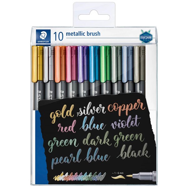 STAEDTLER 8321 METALLIC BRUSH MARKER ASSORTED BOX 10