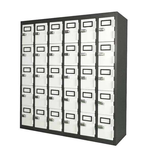 SPECIFICATIONS - Type: Cell Phone/Keys Locker - Material: Steel - Doors: 30 Door - Width: 900mm - Depth: 225mm - Height: 940mm - Colour: Graphite ripplie carcass and white satin doors - Warranty: 10 Years - OEM: LK30T - Due to freight costs, some orders may incur a delivery charge and this will vary depending on the order, particularly in regional areas. Delivery costs can be confirmed at the time of order. Some items require assembly, if you need help this can be advised at the time of order. A service fee for assembly/installation may also apply. Delivery lead times may apply to some items, this can be confirmed at the time of order