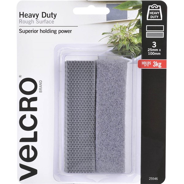 VELCRO BRAND HEAVY DUTY ROUGH SURFACE STICK-ON HOOK AND LOOP TAPE 25 X 100MM PACK 3 PAIRS