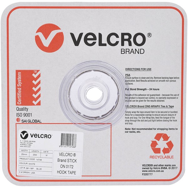 Code: 7000502 Brand: VELCRO Colour: WHITE Size: 25mm x 25m