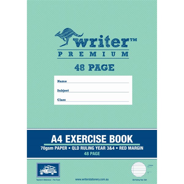 WRITER PREMIUM EXERCISE BOOK QLD RULING YEAR 3/4 70GSM 48 PAGE A4 FIRE TRUCK