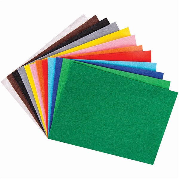 A wonderful classroon pack and assortment of felt pieces - 12 vibrant colours that include white, brown, black, grey, yellow, pink, orange, red, cyan, navy, emerald and light green