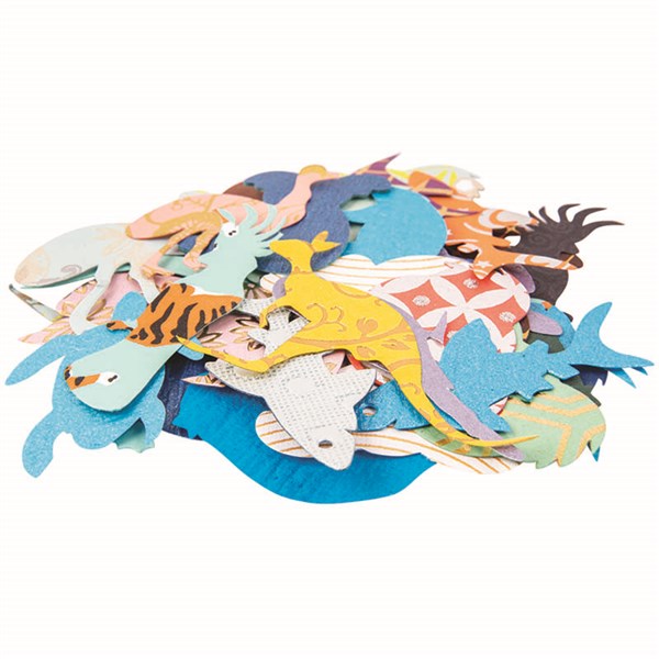 Zart Handmade Pattern Paper - Australian Animal Shapes 100g has been cut from exquisitely embossed, foiled and printed Indian handmade paper - This assortment in a range of festive colours and assorted patterns have been pre-cut into a generous variety of festive shapes