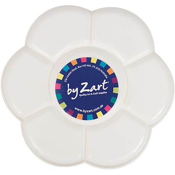 This plastic palette with lid has 6 wells surrounding a centre mixing well in the shape of a daisy - The lid makes it ideal to keep paint usable for the next day