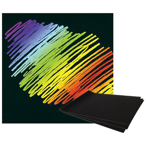 A4 rainbow scraper card with a heavier surface than Scratch-Art Paper making it suitable for all ages - Scratch back the black coating using the wooden stylus to reveal bright rainbow colours underneath